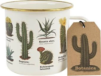 Embrace the outdoors and show everyone your love of cacti and succulents with the Botanica enamel mug!