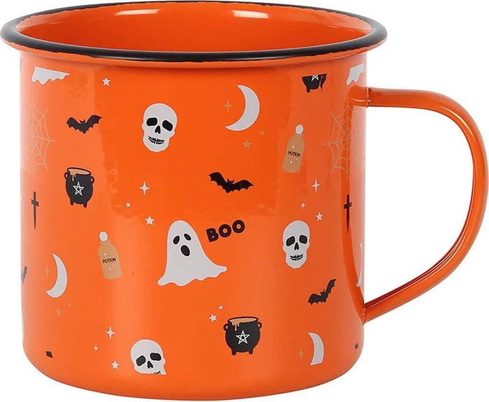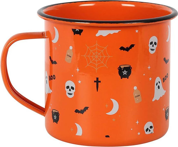 Even witches need to keep hydrated! This enamel-style mug features a fun Halloween print and will pair perfectly with a hot, pumpkin spice latte.